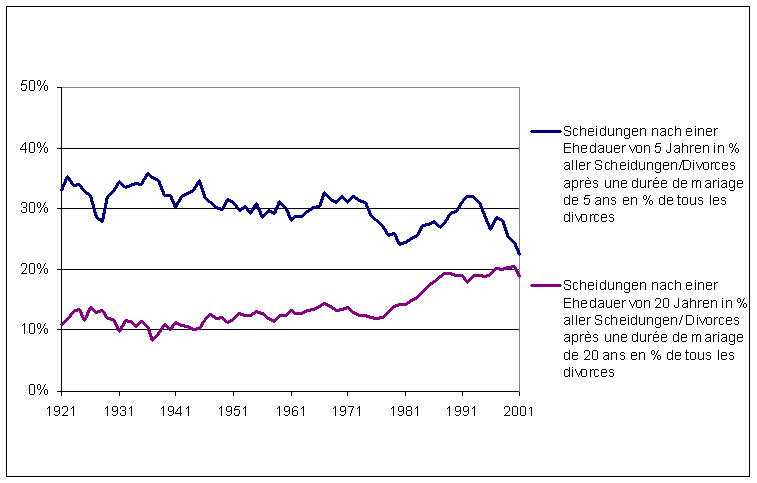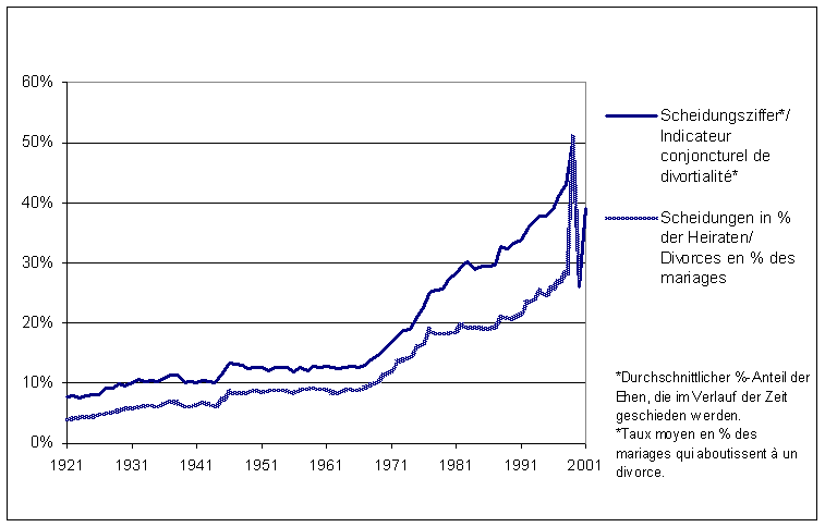 Divorces et indicateur conjoncturel de divortialité 1921-2001