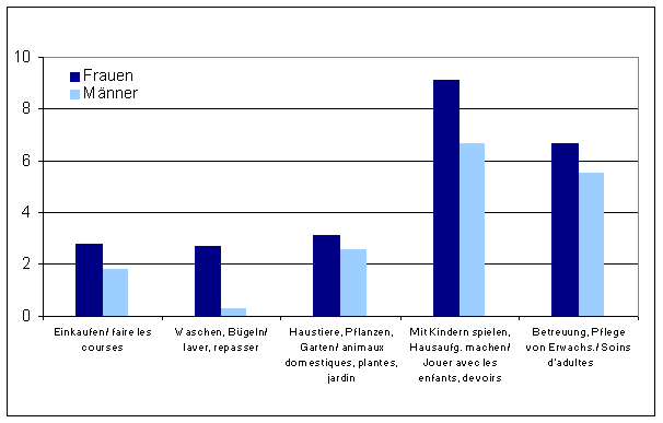 Haus- und Familienarbeit (durchschnittlicher Zeitaufwand in Std. pro Woche) 2000 - nach Art der Tätigkeit |