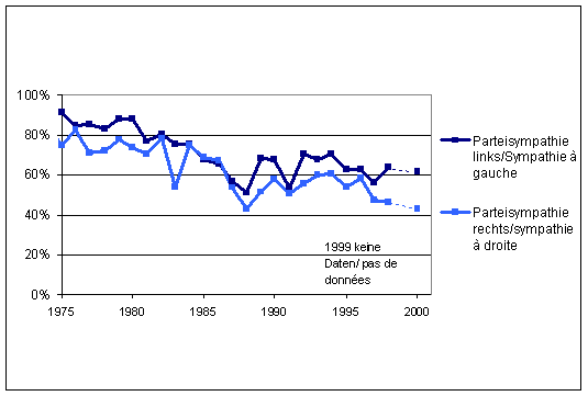«Wie beurteilen Sie den weiteren Ausbau der Sozial- und Krankenversicherung ?» - Beurteilung nach politischer Orientierung: «sehr positiv» und «eher positiv» |