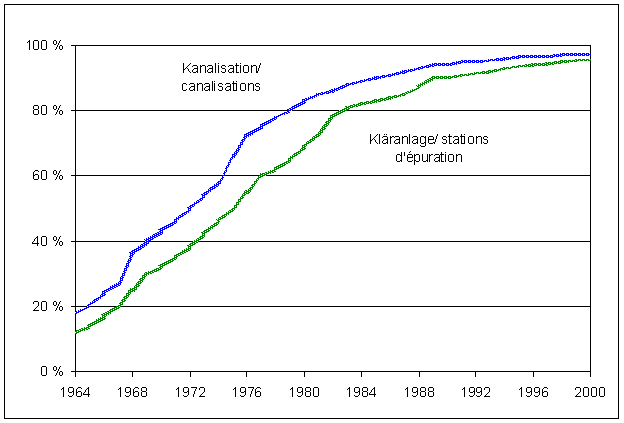Anschluss an Kanalisation und Kläranlage in Prozent 1964-2000