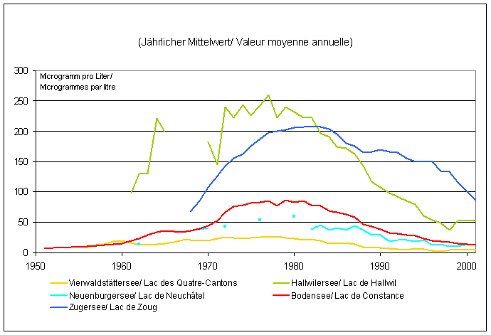 Phosphatgehalt von Schweizer Seen 1951-2001