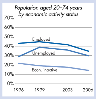 | Further education 1996–2006: Population aged 20–74 years by economic activity status |