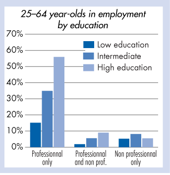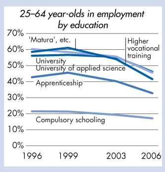 Further education 1996–2006: 25–64 year-olds in employment by education |