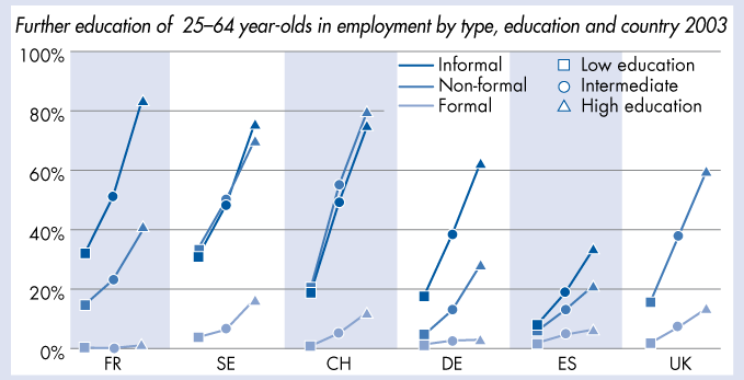 | Further education of 25–64 year-olds in employment: by type, education and country 2003 |
