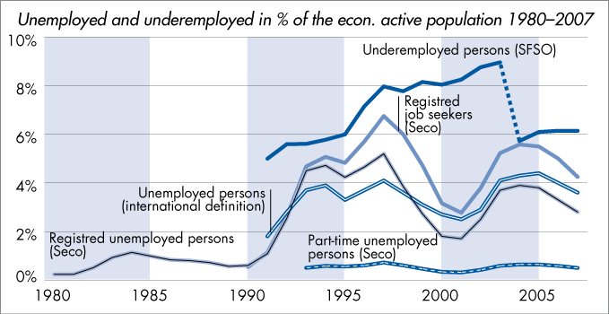 Unemployed and underemployed in % of the econ. active population 1980–2007