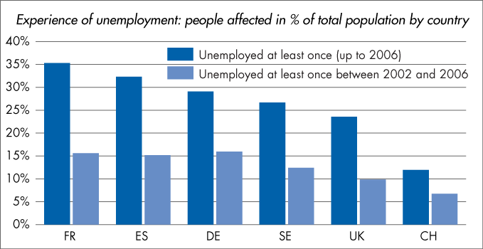 Experience of unemployment: people affected in % of total population by country