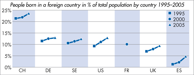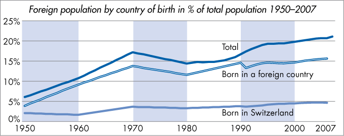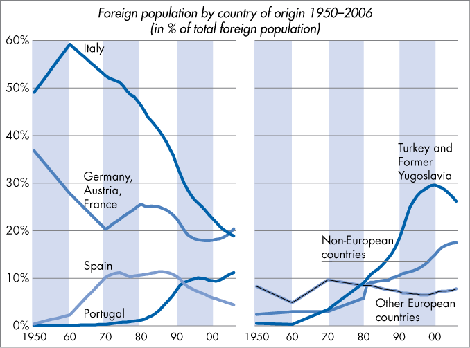 Foreign population by country of origin 1950–2006 (in % of total foreign population)