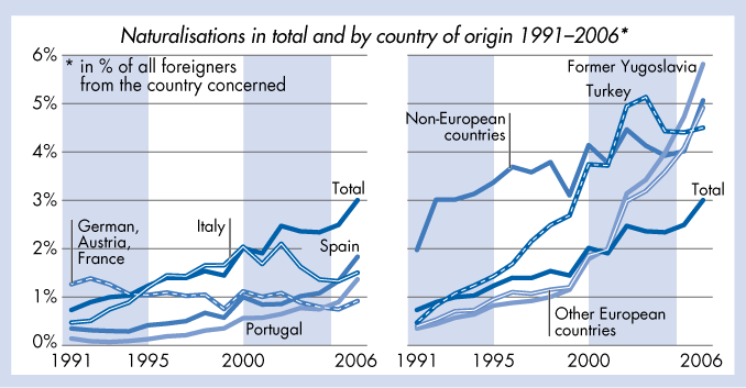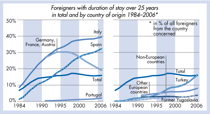 Foreigners with duration of stay over 25 years in total and by country of origin 1984–2006