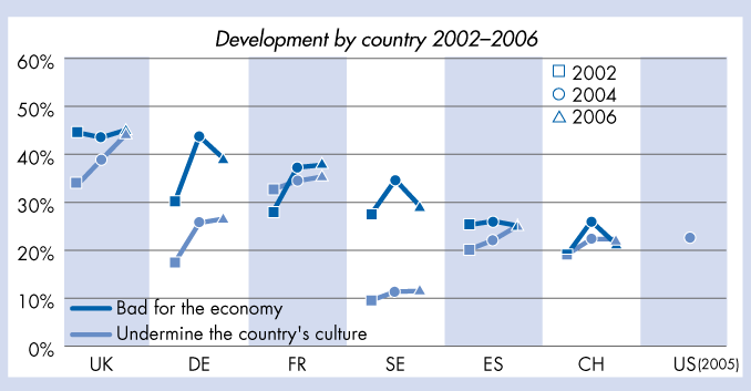 ‘Immigrants are bad for the economy’ and ‘Immigrants undermine the country's culture’ - Development by country 2002–2006