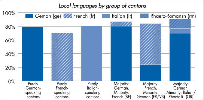 Native language of pupils 2005/2006 - Local languages by group of cantons