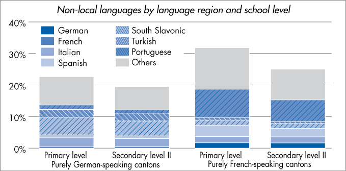 Native language of pupils 2005/2006 - Non-local languages by language region and school level