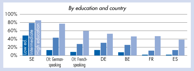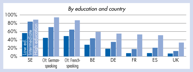 Good knowledge of English (CH 2006, EU 2000) - By education and country |