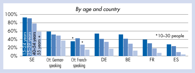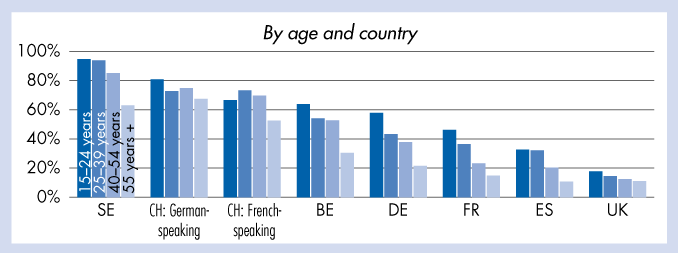Good knowledge of English (CH 2006, EU 2000) - By age and country |