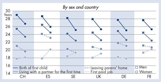 Becoming an adult: average age 2006 - By sex and country
