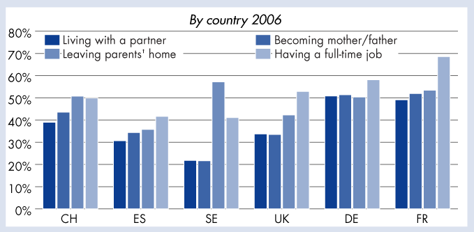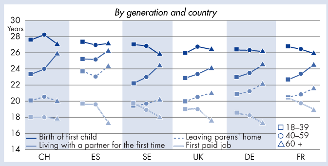 Becoming an adult: average age 2006 - By generation and country