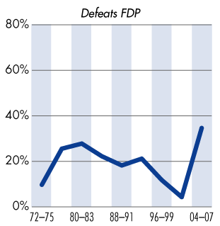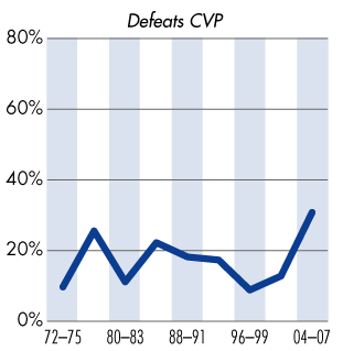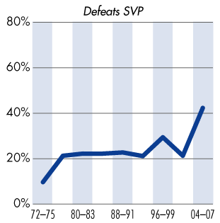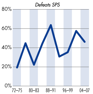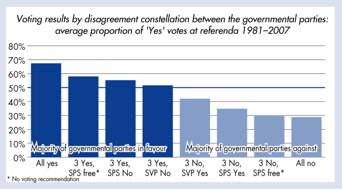 | Voting results by disagreement constellation between the governmental parties: average proportion of 'Yes' votes at referenda 1981–2007 |