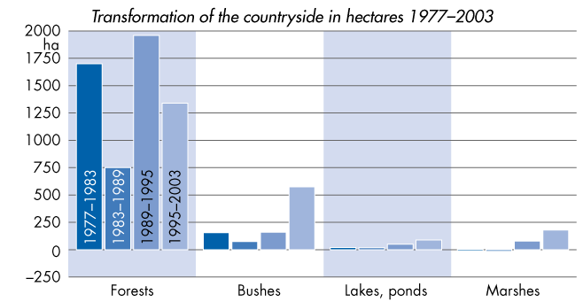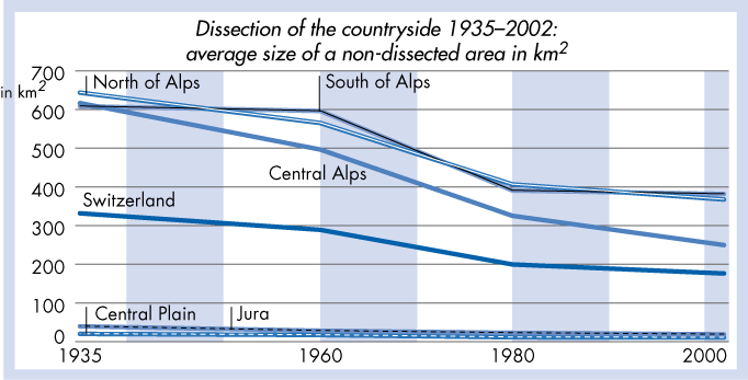 Dissection of the countryside 1935–2002: average size of a non-dissected area in km2