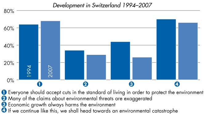 | Ecological awareness: Agreement with statement in %, Development in Switzerland 1994–2007 |