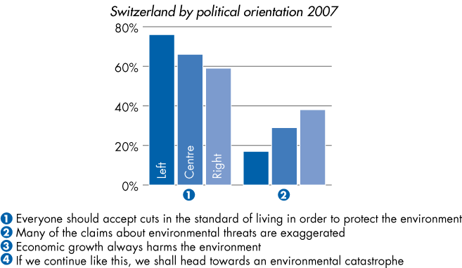 Ecological awareness: Agreement with statement in %, Switzerland by political orientation 2007 |
