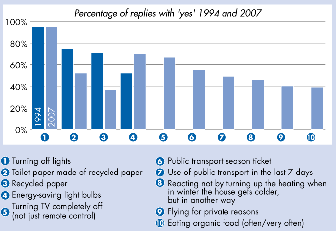 Which of the following measures do you put into practice?' - Percentage of replies with 'yes' 1994 and 2007