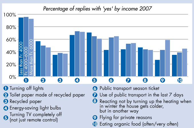 Which of the following measures do you put into practice?' - Percentage of replies with 'yes' by income 2007