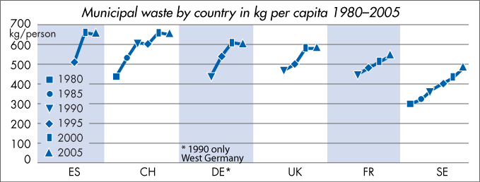 | Municipal waste and separate collections (recyclable waste) 1970–2006 |