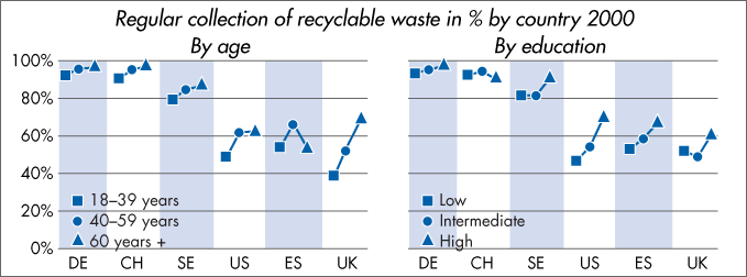 | Regular collection of recyclable waste in % by country 2000 - By age and by education |