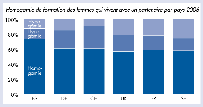 Homogamie de formation des femmes qui vivent avec un partenaire par pays 2006