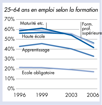 Formation continue 1996–2006 - 25–64 ans en emploi selon la formation |