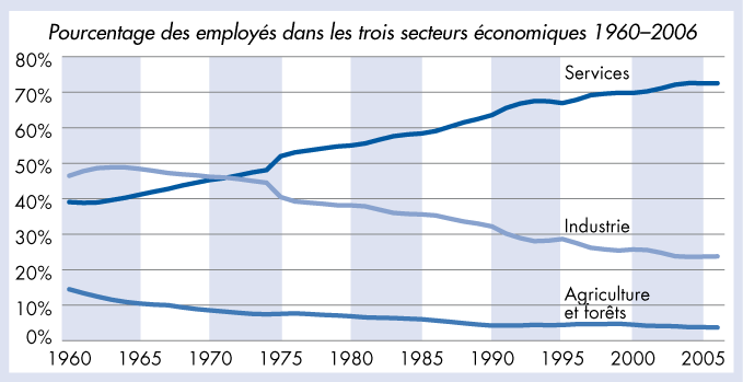 | Pourcentage des employés dans les trois secteurs économiques 1960–2006 |