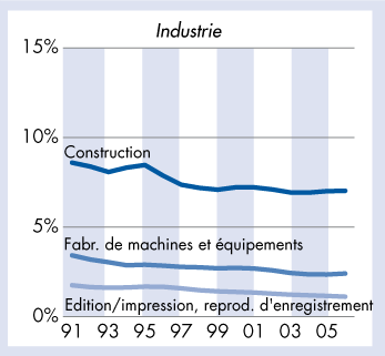 Augmentation et diminution de l'emploi pour certaines branches économiques 1991–2006 - Industrie |