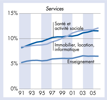 Augmentation et diminution de l'emploi pour certaines branches économiques 1991–2006 - Services |