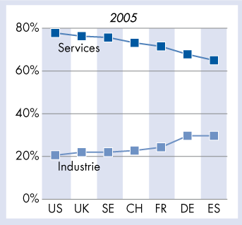 Employés dans l'industrie et les services en % par pays - 2005 |