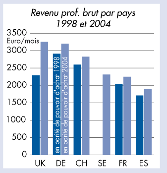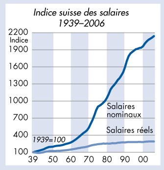 | Revenu professionnel annuel net en Suisse 1991–2007 en francs de 1991 - Salariés (plein temps) |