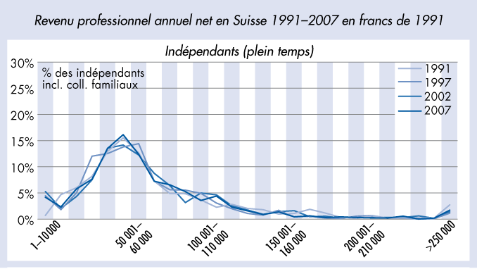Revenu professionnel annuel net en Suisse 1991–2007 en francs de 1991 - Indépendants (plein temps) |