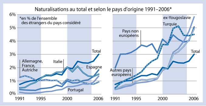 Naturalisations au total et selon le pays d'origine 1991–2006