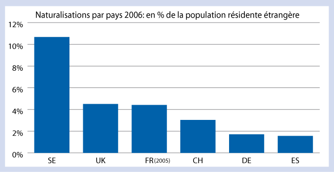 Naturalisations par pays 2006: en % de la population résidente étrangère
