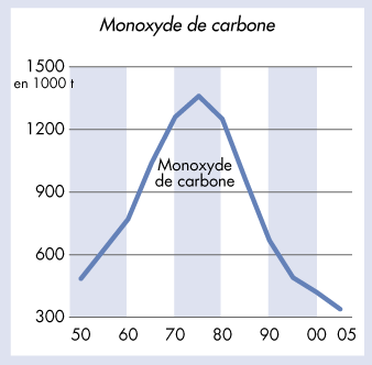 Emmissions polluantes dans l'air en 1000 tonnes 1950–2005: Monoxyde de carbone |