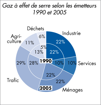 Gaz à effet de serre selon les émetteurs 1990 et 2005