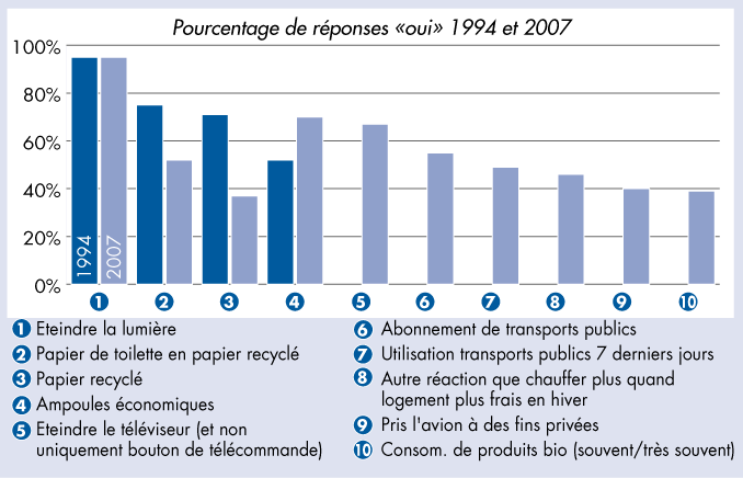 «Lesquelles des mesures suivantes appliquez-vous?» - Pourcentage de réponses «oui» 1994 et 2007