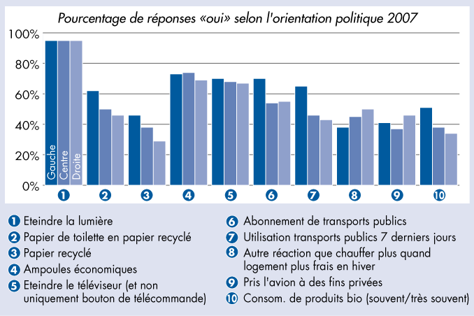 «Lesquelles des mesures suivantes appliquez-vous?» - Pourcentage de réponses «oui» selon l'orientation politique 2007