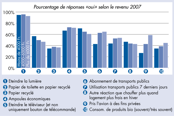 «Lesquelles des mesures suivantes appliquez-vous?» - Pourcentage de réponses «oui» selon le revenu 2007