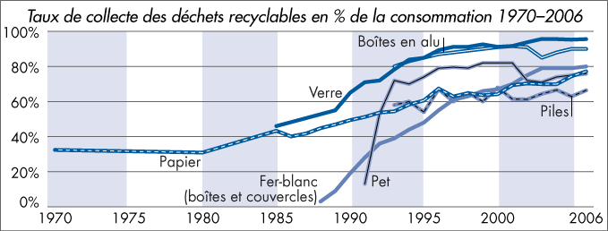 Taux de collecte des déchets recyclables en % de la consommation 1970–2006 |