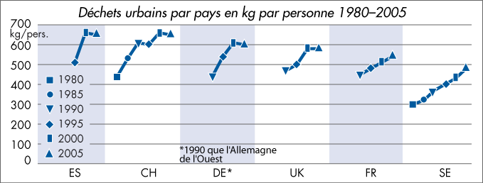 | Déchets urbains par pays en kg par personne 1980–2005 |