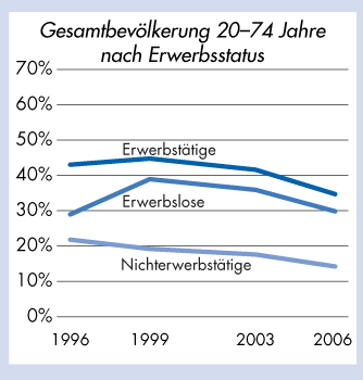 | Weiterbildung 1996–2006 – Gesamtbevölkerung 20–74 Jahre, nach Erwerbsstatus |