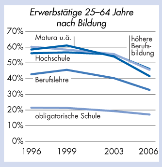 Weiterbildung 1996–2006 – Erwerbstätige 25–64 Jahre, nach Bildung |