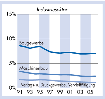 Zu- und Abnahme der Beschäftigung in ausgewählten Branchen 1991–2006: Industriesektor |