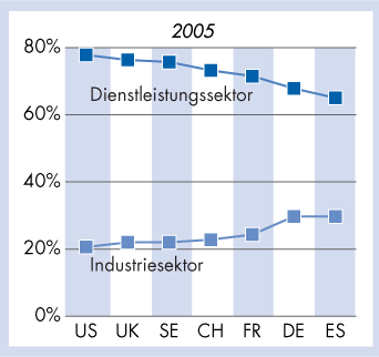 Beschäftigte im Industrie- und Dienstleistungssektor in Prozent nach Land, 2005 |