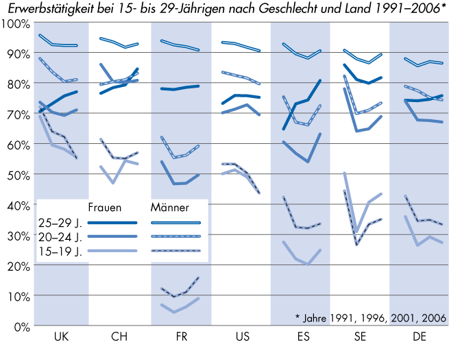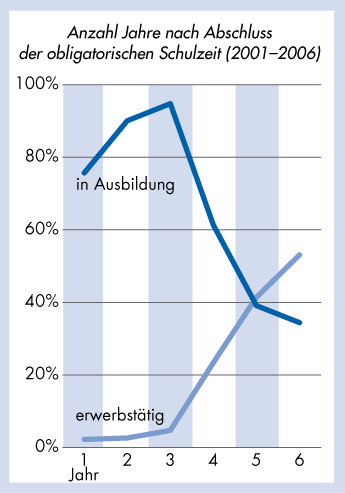 | Übergang von der Schule zur Erwerbstätigkeit bei der Schulabgangskohorte 2000 – Anzahl Jahre nach Abschluss der obligatorischen Schulzeit (2001–2006) |