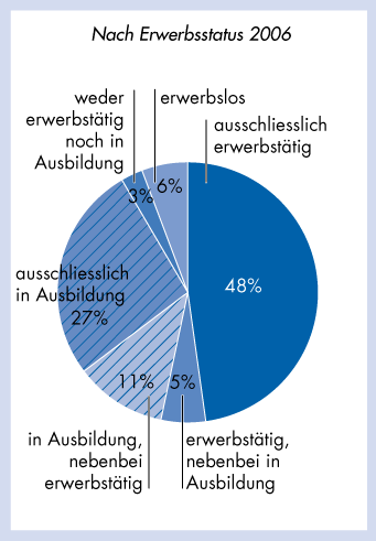Übergang von der Schule zur Erwerbstätigkeit bei der Schulabgangskohorte 2000 – Nach Erwerbstatus 2006 |